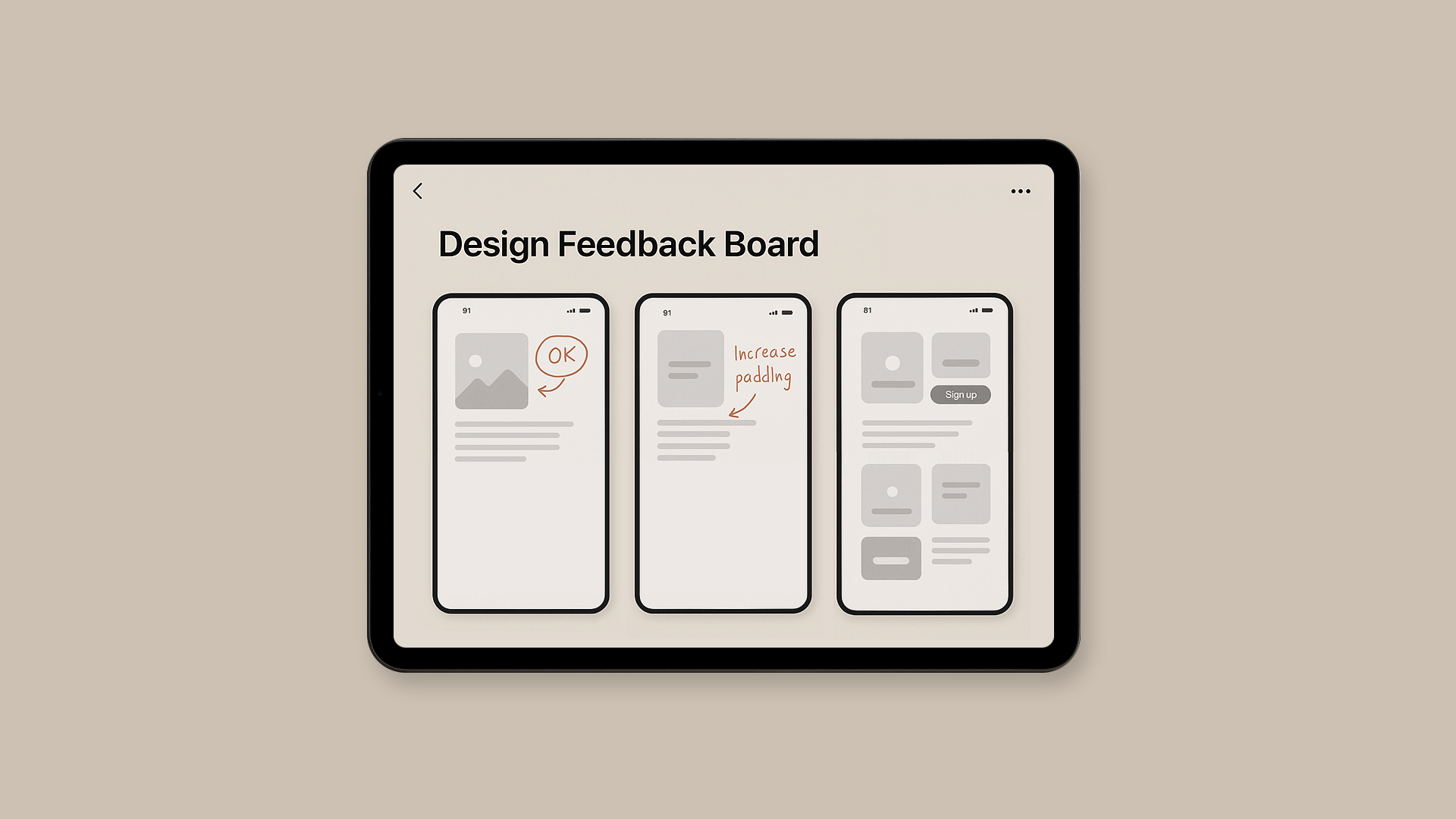 단순히 텍스트를 적는 것보다 Apple Pencil로 직접 표시하면 ‘여기 라운드 처리 자연스러움 ↑’, ‘로고 간격 2px 조정’처럼