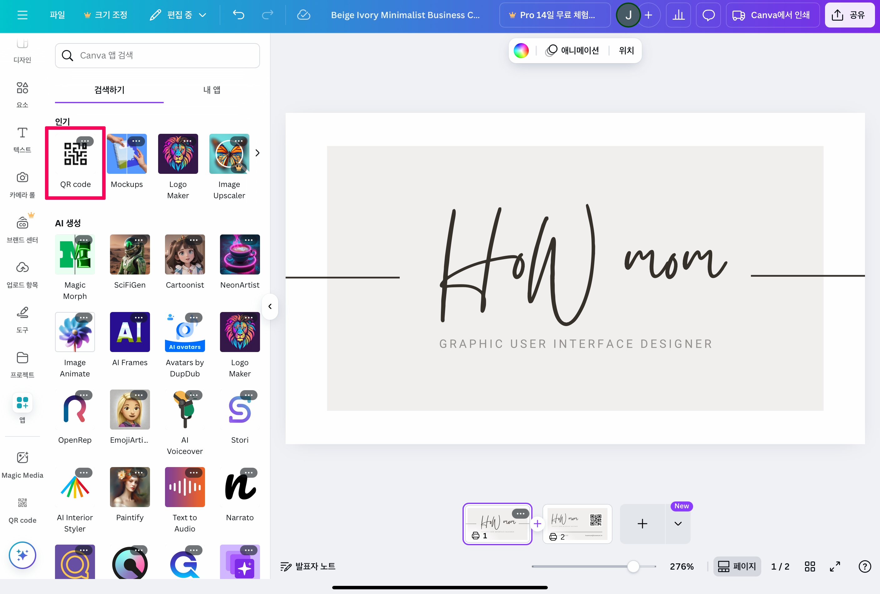 2. Canva에서 QR 코드 생성