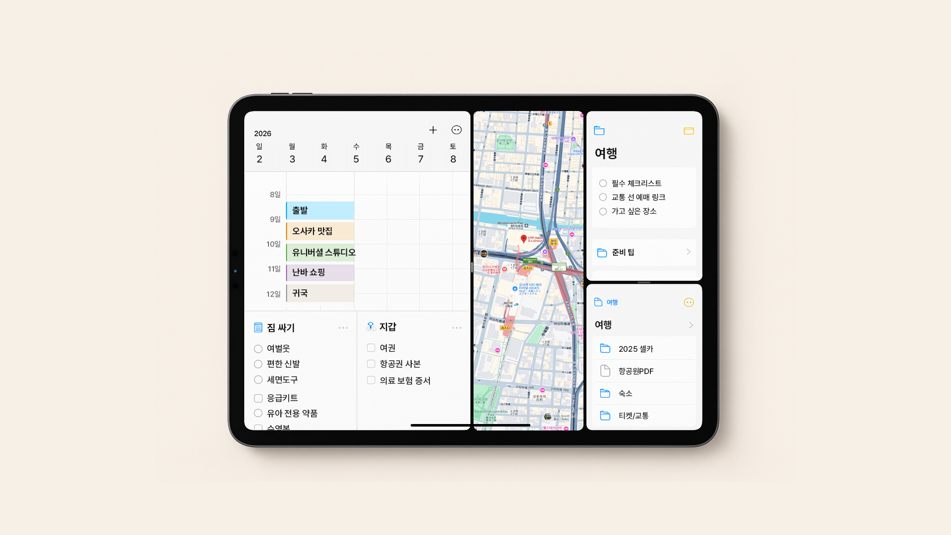 아이패드의 기본 앱들만 잘 엮어도 정보 정리 + 체크리스트 + 이동 동선까지 완벽한 루틴이 됩니다.