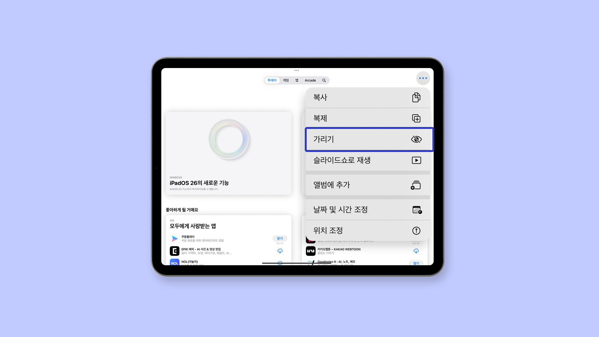 아이패드의 ‘가려진 항목’은 단순한 기능 같지만, 가족과 함께 쓰는 환경에서는 필수 보안 장치가 될 수 있어요.