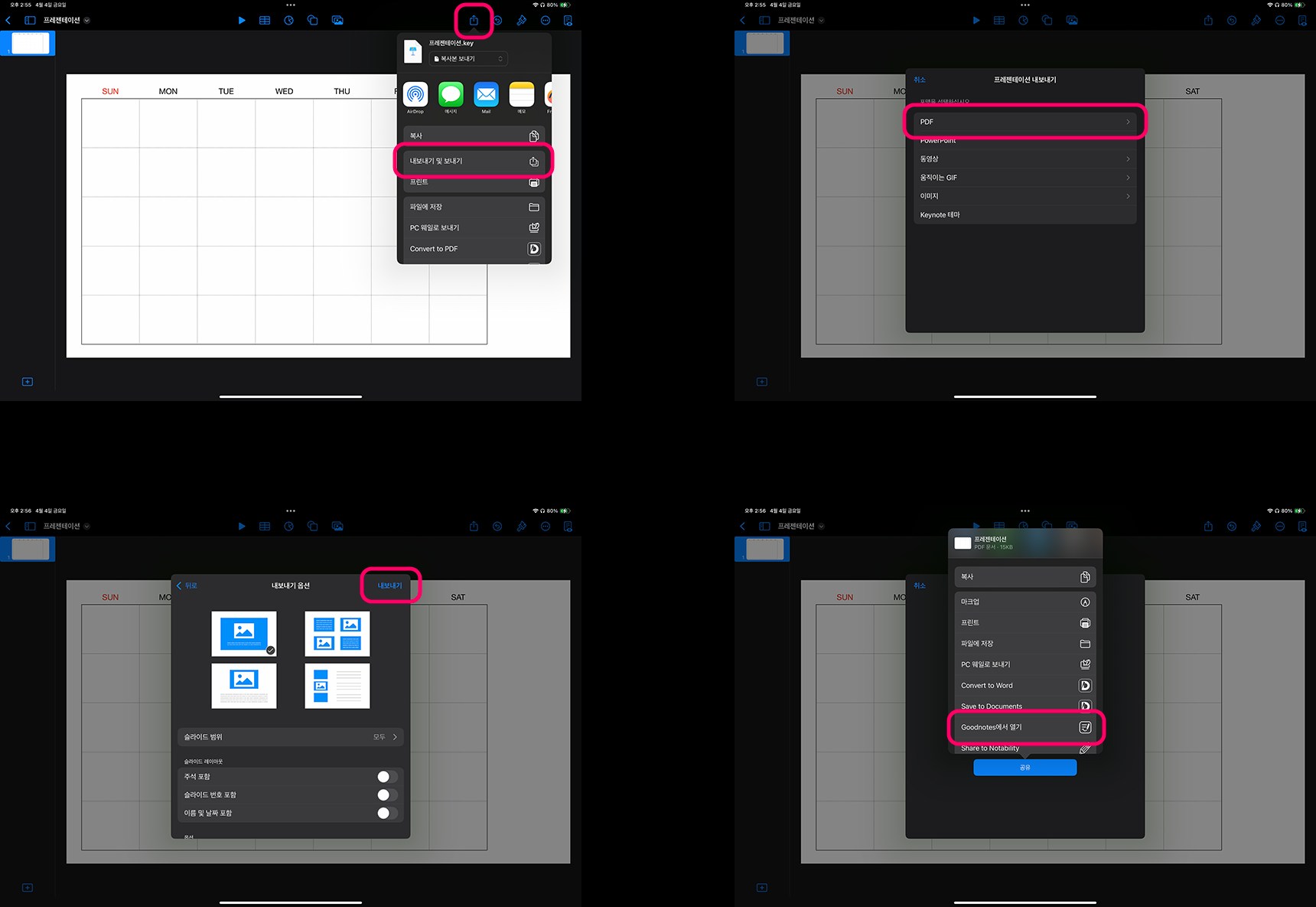 ✔️ 꼭 PDF 형식으로 내보내야 GoodNotes에서 사용 가능