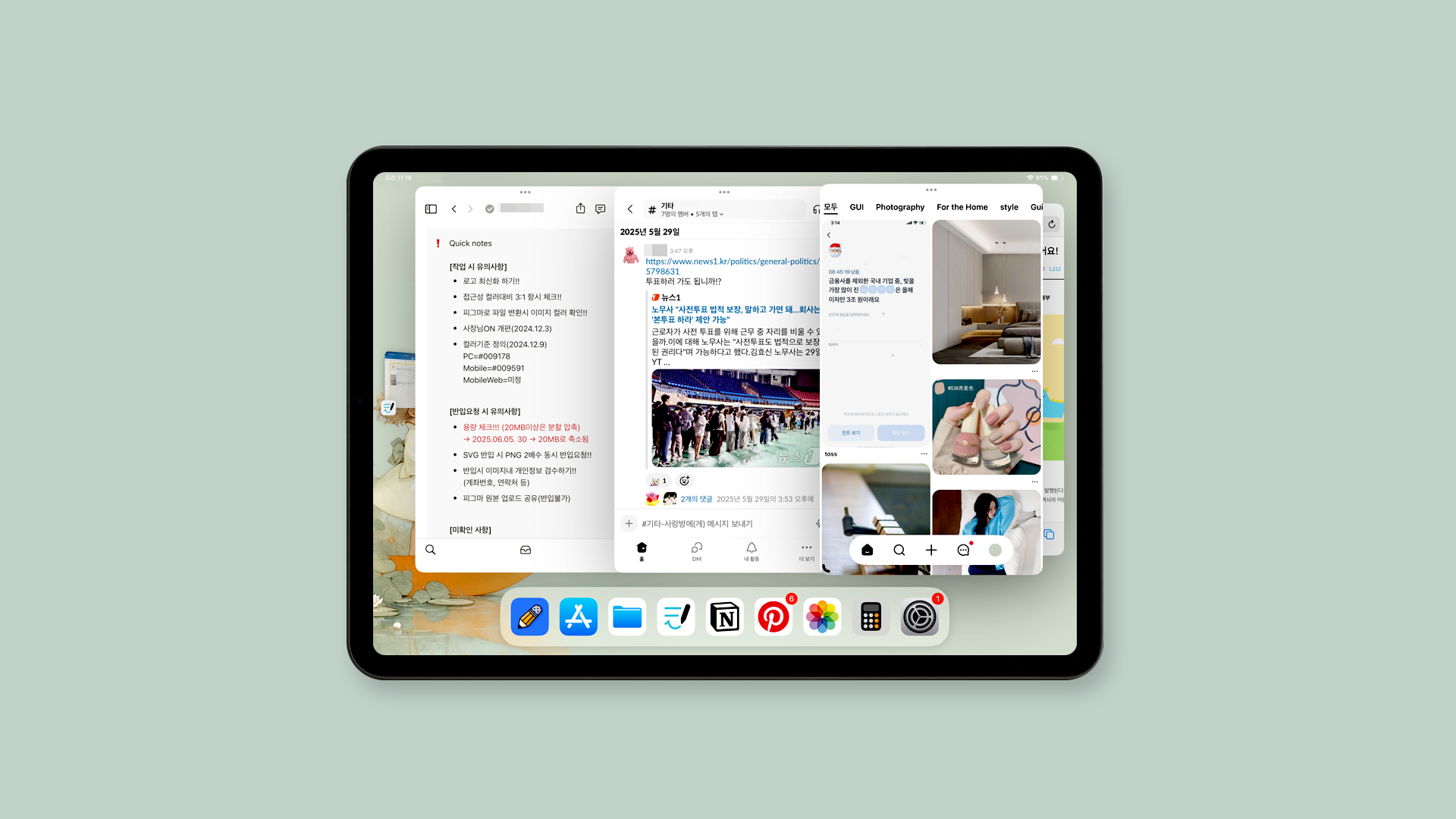 | Safari | 자료조사, 콘텐츠 확인 | 다중 탭 + 사이드 뷰 활용 |